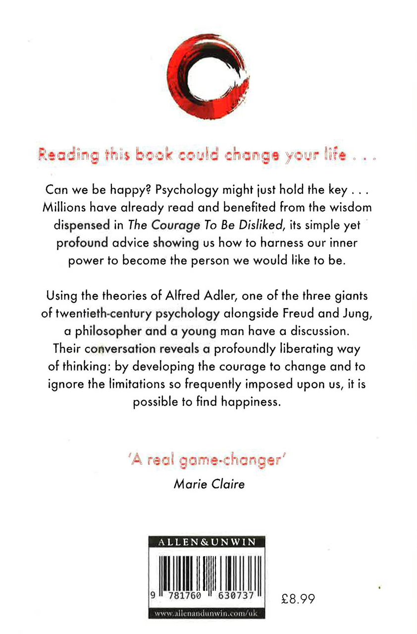This book challenges conventional beliefs about happiness, success, and relationships. Through conversational storytelling, it argues that freedom and fulfillment come from breaking away from the need for approval, embracing responsibility for one’s choices, and living authentically. It teaches that happiness is not found in control or validation, but in courage—the courage to be disliked.